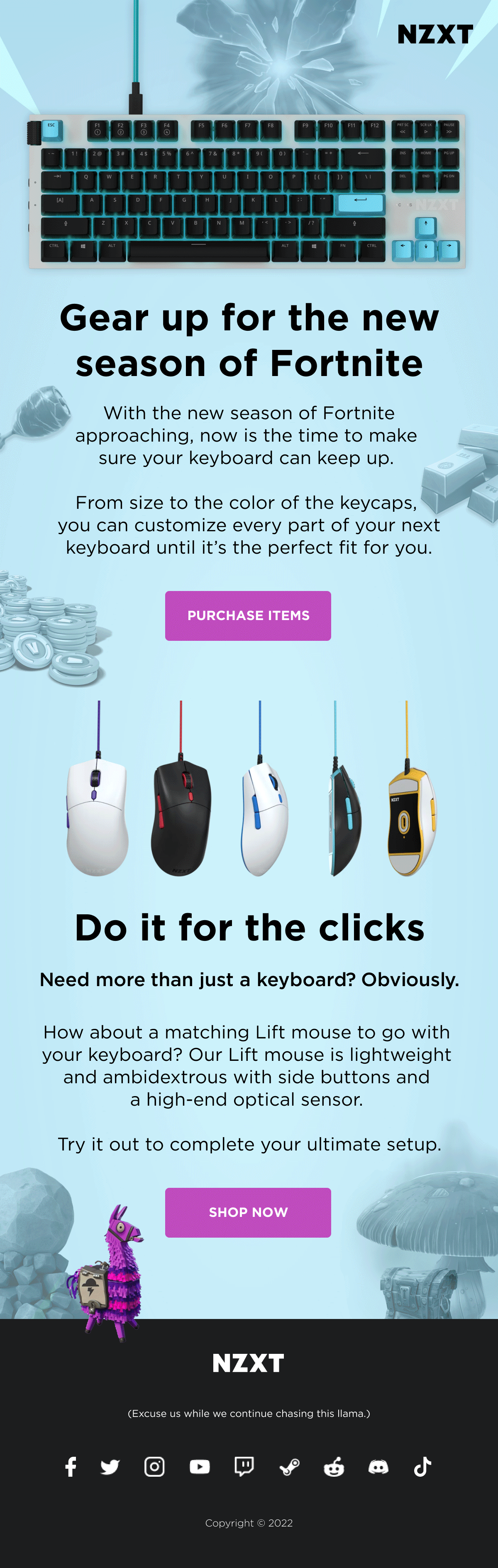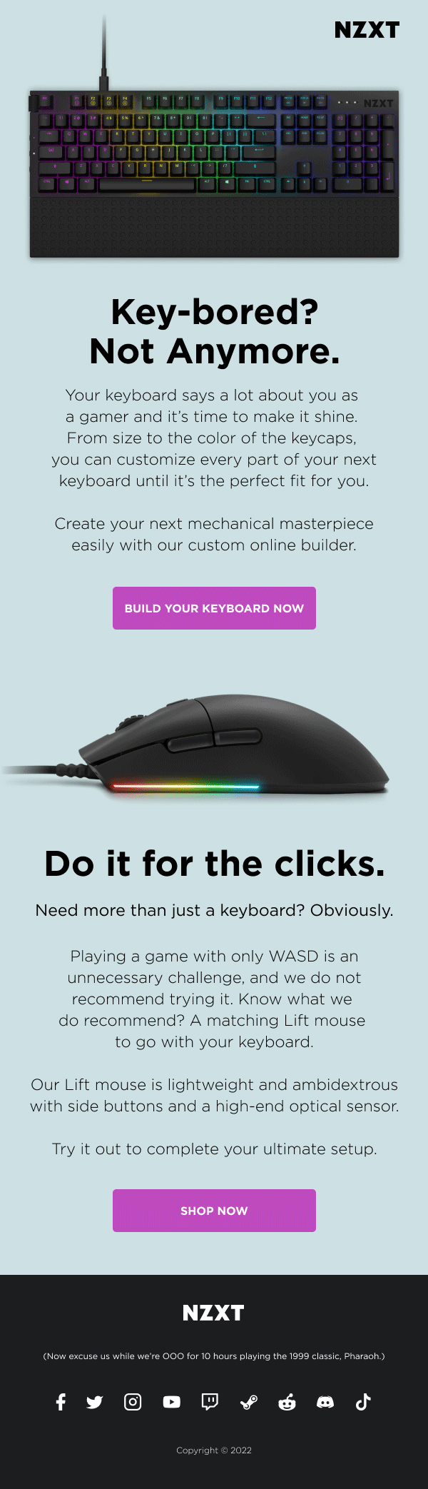 NZXT is know for their Premium PCs that have excellent build quality and feature beautiful designs. With their goal in mind to make PC building and gaming an even better experience, we decided to make their emails just as unique to cater to their passionate audience.